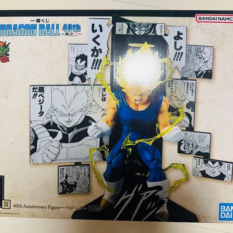 드래곤볼 제일복권 B상 40th Anniversary Figure ~베지터~ 사이즈: 피규어 약 17cm, 뒷면 패널 약 24cm 결사의 각오로 마인 부우에게 도전하는 베지터를 피규어화! 이펙트 부품과 말풍선 패널이 포함된 럭셔리한 사양입니다. [베지터]의 명장면을 되돌아보는 피규어입니다! ※ 새상품, 미개봉이므로 개봉 후 불량 등은 직접 제조사에 연락해 주십시오. ※ 구매 후 반품 교환은 불가하오니 양해 부탁드립니다. ※ 완충재로 감싸 방수 봉투에 넣어 발송합니다. 즉시 구매 환영 ☻︎ 익명 배송