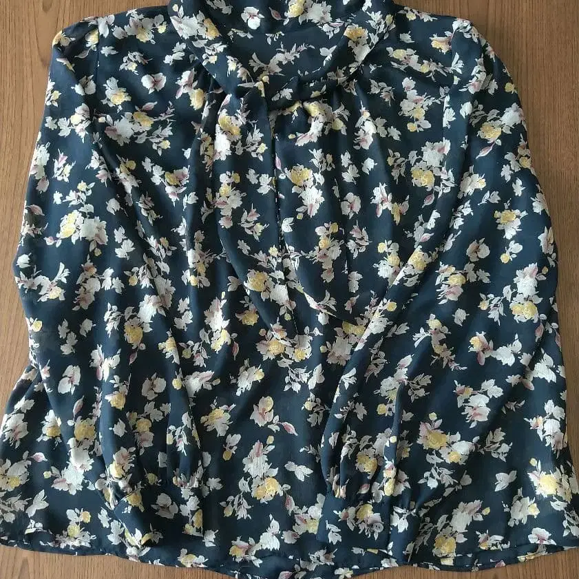 뉴요커 꽃무늬 보타이 쉬폰 블라우스