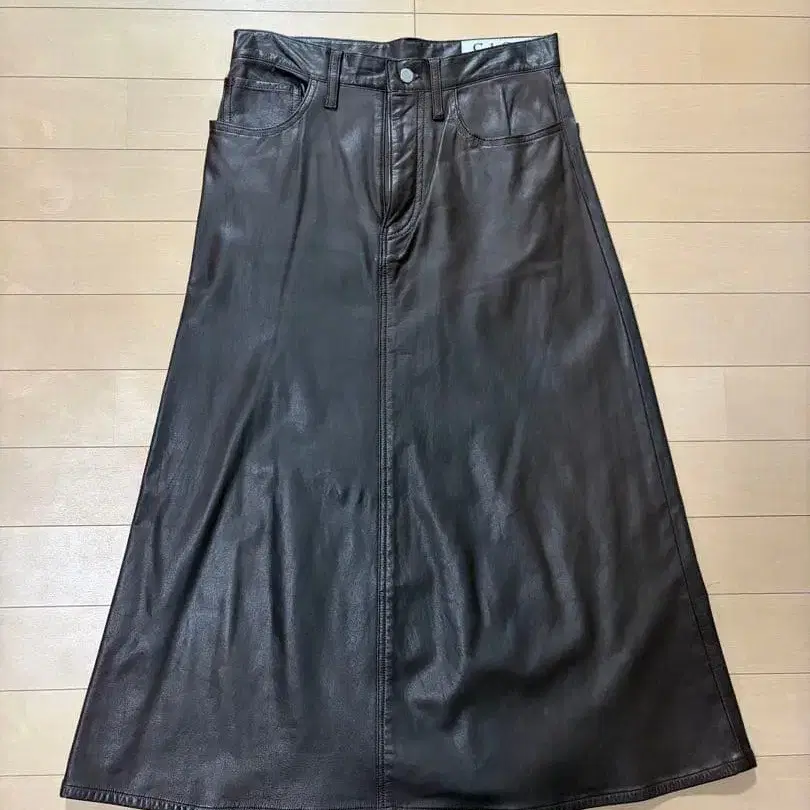 가죽 소재의 플레어 롱 스커트, 블랙과 브라운 2가지 색상으로 출시.