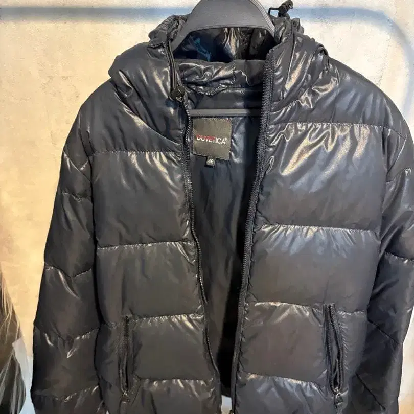 고품질 다운 소재를 사용한 블랙 다운 자켓.