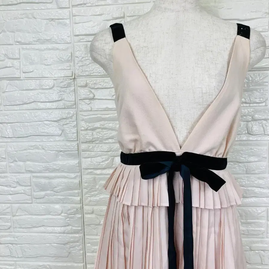 #MERCURYDUO #머큐리 듀오 #원피스 #드레스 #무릎 기장 원피스 #플리츠 #리본 #V넥 #슬리브리스 #라이트 핑크 #블랙 #페미닌 #엘레강트 #파티 드레스 #포멀 #데이트복 #멋짐 #여성 패션 #봄/여름 #FREE 사이즈