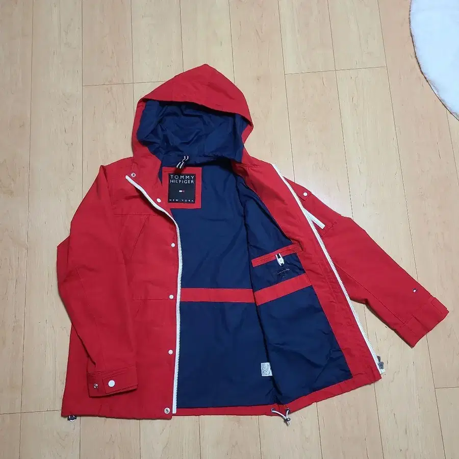 선명하고 화사한 빨간색이 시선을 사로잡는 아이템으로, 안감의 네이비 색상과의 대비가 타미힐피거다운 클래식한 디자인입니다.