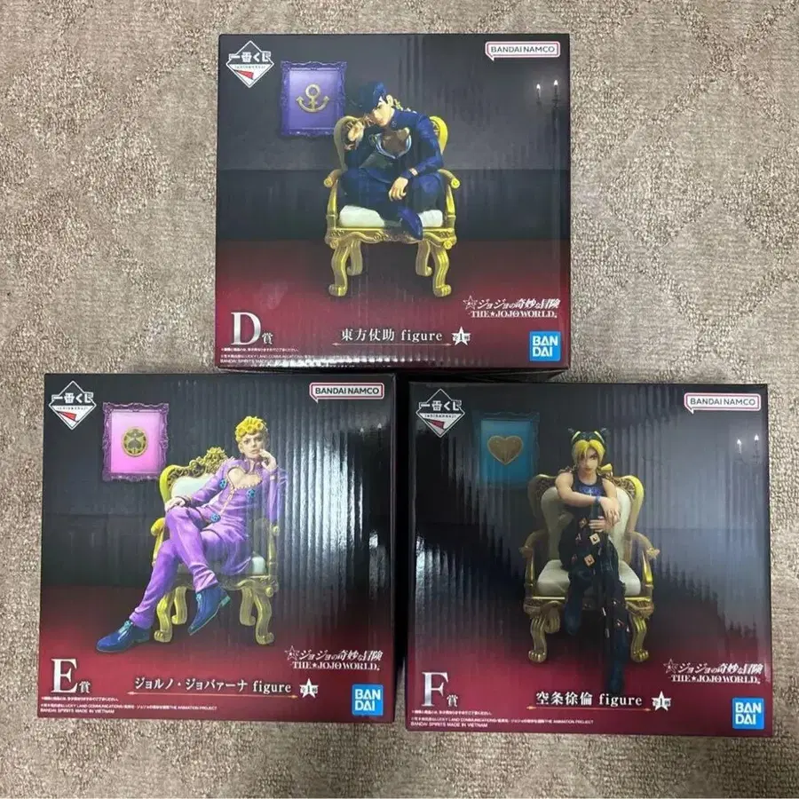죠죠의 기묘한 모험 제일복권 D상 히가시카타 죠스케 피규어 E상 죠르노 죠바나 피규어 F상 쿠죠 죠린 피규어 미개봉 새상품이지만, 이해해 주실 수 있는 분만 부탁드립니다.