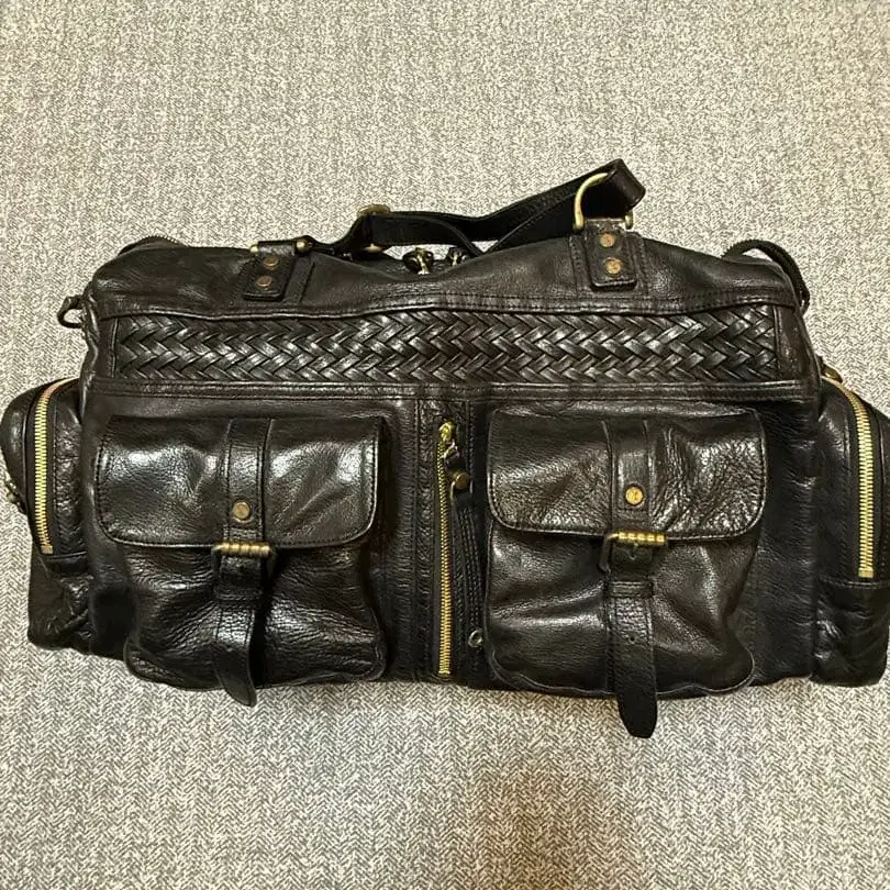 블랙 가죽 보스턴 백, 뜨개질 디자인과 골드 지퍼 포함. - 색상: 블랙 - 소재: 가죽 - 포켓 수: 4 - 지퍼: 골드색 - 디자인: 뜨개질 디자인 방문해 주셔서 감사합니다.