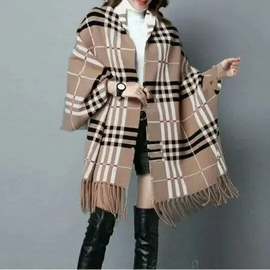 GRAND TABLE 그랜터블 판초 케이프 체크 베이지