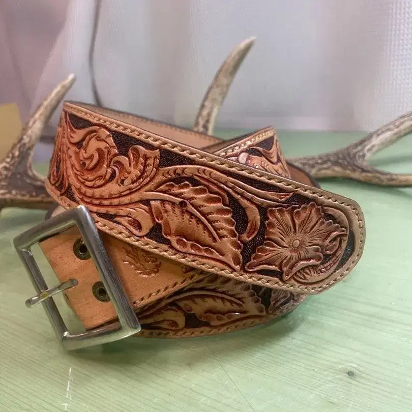 가죽 꽃무늬 조각 벨트