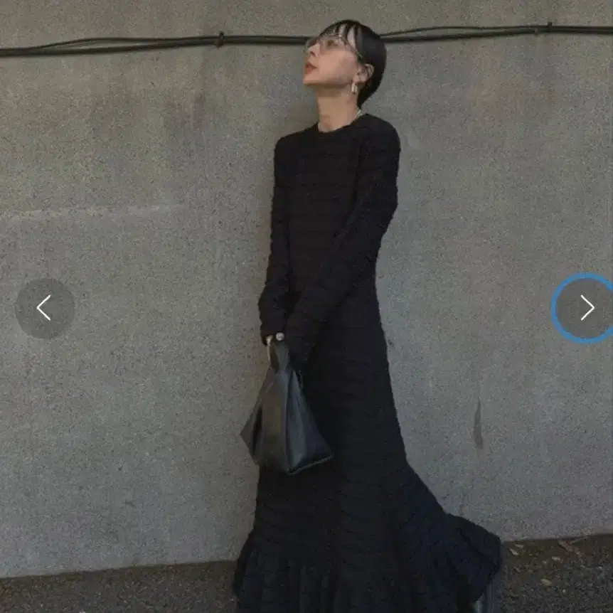 트위드 느낌의 티셔츠 소재를 사용한 드레스입니다. 신체의 라인을 너무 드러내지 않으면서 여성스러운 실루엣을 유지해 줍니다. 원단에는 4종류의 실을 엮어 만든 요철감이 있는 티셔츠 소재를 사용했습니다. 스트레치성이 있어 착용감이 뛰어납니다. 드레시한 실루엣과 소재 덕분에 간단한 파티나 디너 장면에 추천합니다.