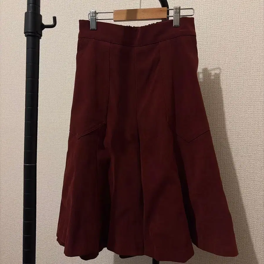 플레어 가우초 팬츠 버건디 & 스커트 다크 그린 세트