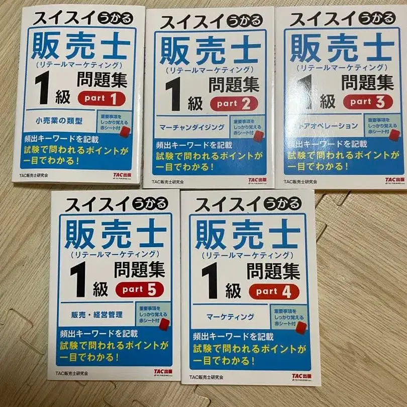 이용해 주셔서 감사합니다. 1. 판매사 공식 핸드북 상하권 (판매사 1급 대응) 정가: 7,040엔 (세금 포함) 2. 스이 스이 합격 판매사 1급 문제집 part 1-5 - 권수: 5권 - 내용: 판매사 시험 대책 문제집 - 대상: 판매사 1급 정가: 2,200엔 (세금 포함) x 5 = 11,000엔 궁금한 점이 있으시면 언제든지 댓글 남겨주세요.