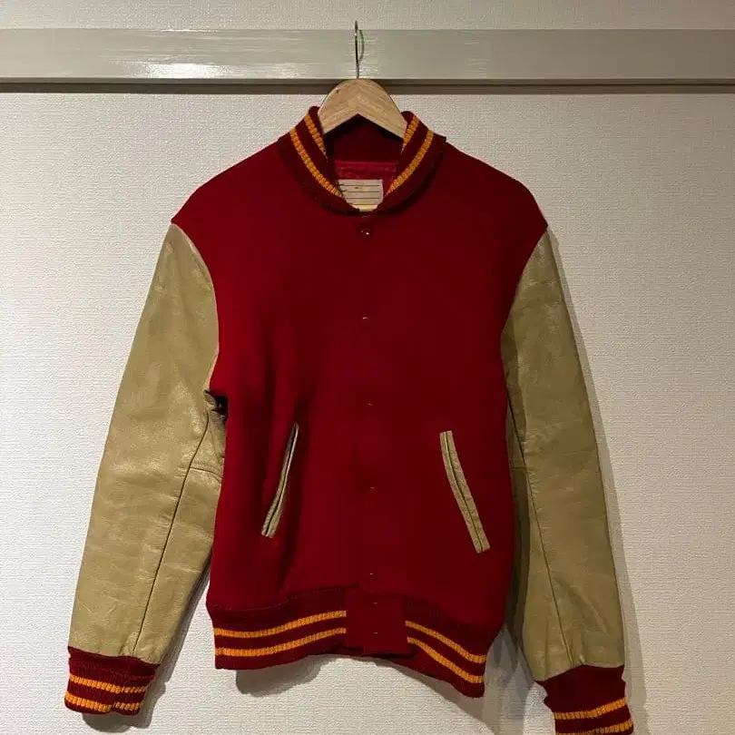 • 울 가죽 바시티 자켓 빨간색 90s 야구 아메카지 구제 의류