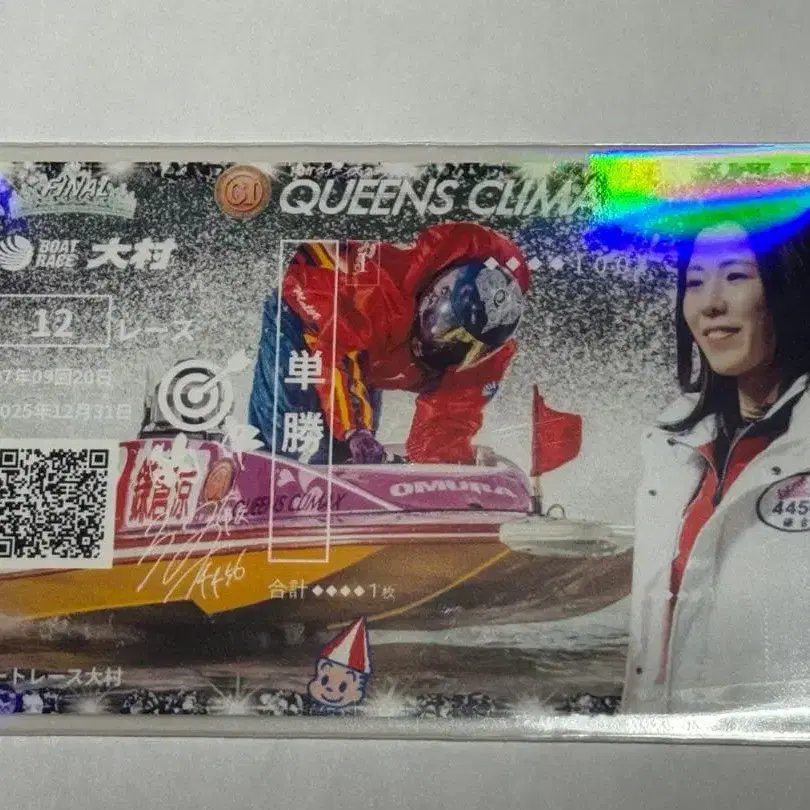 카마쿠라 료 선수의 우승 기념 승선권입니다.
