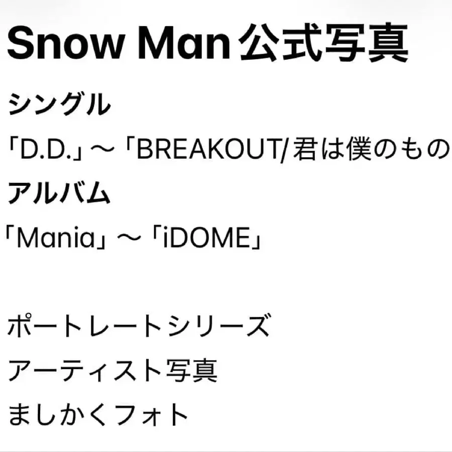 Snow Man 공식 사진입니다. 현재는 4장만 올렸지만, 앞으로 늘릴 예정입니다. 보유 사진이 궁금하신 분은 댓글 남겨주세요. Snow Man 이와모토 히카루, 후카사와 타츠야, 라울, 와타나베 쇼타, 무카이 코지, 아베 료헤이, 메구로 렌, 미야타테 료타, 사쿠마 다이스케