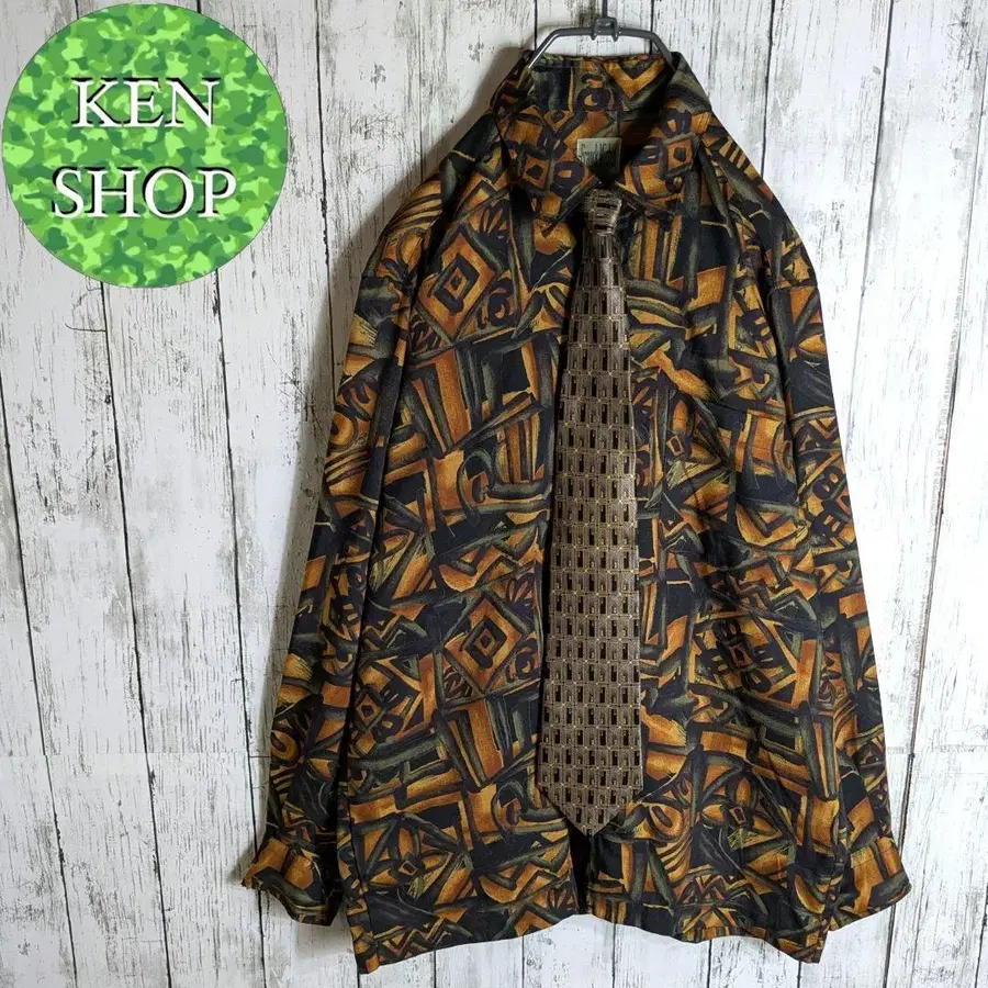 • 80s풍 올 패턴 디자인 셔츠 페이즐리 LL 구제 의류 VINTAGE