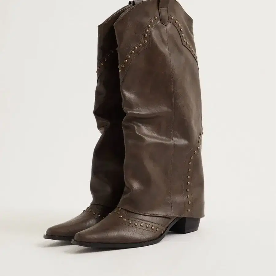 스터드 장식 다크 브라운 롱 부츠