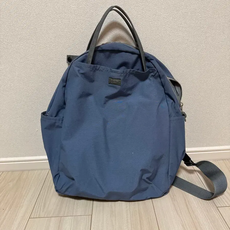 색상 - 블루 그레이 작년에 핑크와 함께 출시된 한정판 색상입니다. 23000 정도였던 것 같습니다. 포켓이 많아서 매우 사용하기 편리합니다. 앞면에도 큰 포켓이 있고, 안쪽에는 열쇠 등을 넣을 수 있는 작은 포켓도 있습니다. 뒷면 바깥쪽과 안쪽 모두 큰 포켓이 있습니다. 사이드의 드링크나 우산을 넣을 수 있는 포켓도 편리합니다. 안쪽에 사이드 포켓 1개 있습니다. 꽤 사용했습니다. 바닥에 검은 점이 생겼습니다. 사이즈는 대략 다음과 같습니다. 세로 37cm 가로 27cm 바닥 12cm 정도입니다. 사용감이 있으므로, 신경 쓰이는 분은 구매를 자제해주세요!!!