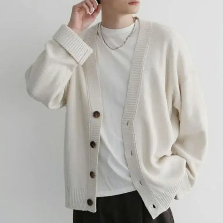 LILL 루즈 실루엣 롤업 볼륨 슬리브 가디건