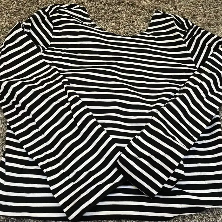 V넥 티셔츠입니다. 앞뒤 구분 없이 착용 가능하다고 합니다. 시착만 한 상품입니다. 사이즈 어깨 너비 40cm 가슴 너비 50cm 기장 44cm