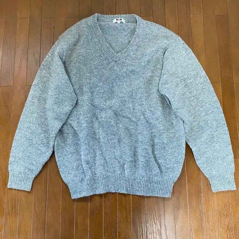 그레이 V넥 스웨터 L 울 100%