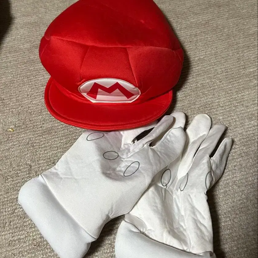 마리오 캐릭터 코스튬에 최적인 모자와 장갑 세트.