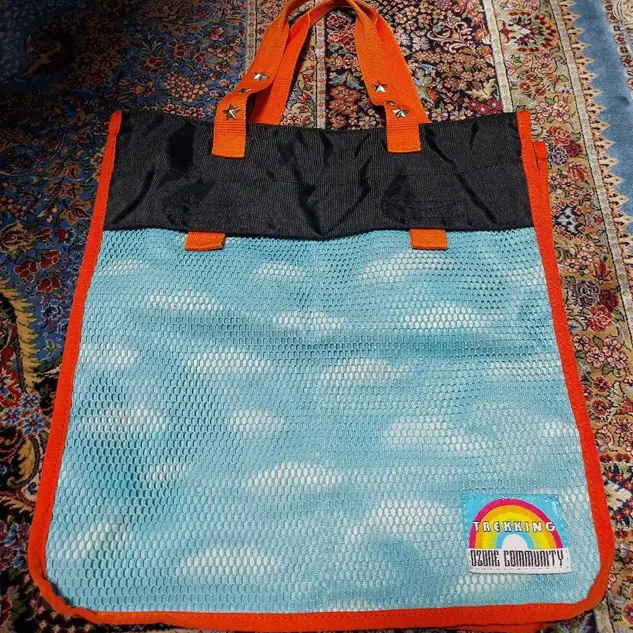 오존 커뮤니티 토트백 하늘 패턴 오렌지 초레어