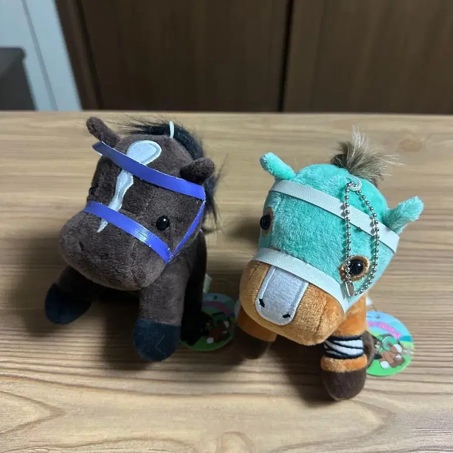 말구 장식이 특징인 소형 말 봉제 인형 세트. - 색상: 브라운과 스카이블루 - 디자인: 말 봉제 인형 - 특징: 말구 장식 포함 - 사이즈: 소형 방문해 주셔서 감사합니다.