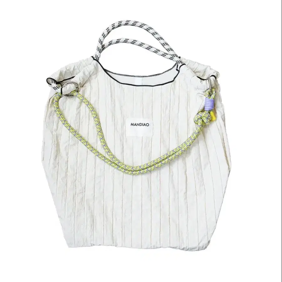 스트라이프 디자인의 아이보리 2WAY 토트백, 로프 핸들 포함하여 스타일리시합니다. - 브랜드: MANDIAO - 색상: 아이보리 - 스타일: 2WAY 토트백 - 소재: 스트라이프 디자인 - 특징: 로프 핸들 포함 3회 정도 사용했습니다. 방문해 주셔서 감사합니다.