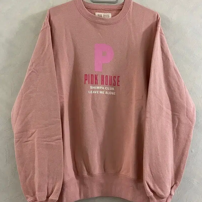중고품이지만 사용감이 적고 상태는 새상품급입니다. 사이즈 L, 가슴 너비 약 54cm, 기장 약 60cm. 면 100%. 새상품급 PINK HOUSE 맨투맨 사이즈 L 여성용 핑크하우스 트레이닝복