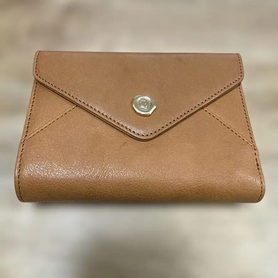 소 가죽 소재의 브라운 봉투형 접이식 지갑, 골드 금장 장식 포함. - 색상: 브라운 - 디자인: 봉투형 - 소재: 가죽 - 금장 장식: 골드 - 상태: 양호 정가 17600엔 (세금 포함) 사이즈 가로 길이 13cm, 세로 9.5cm, 바닥 3cm 방문해 주셔서 감사합니다.