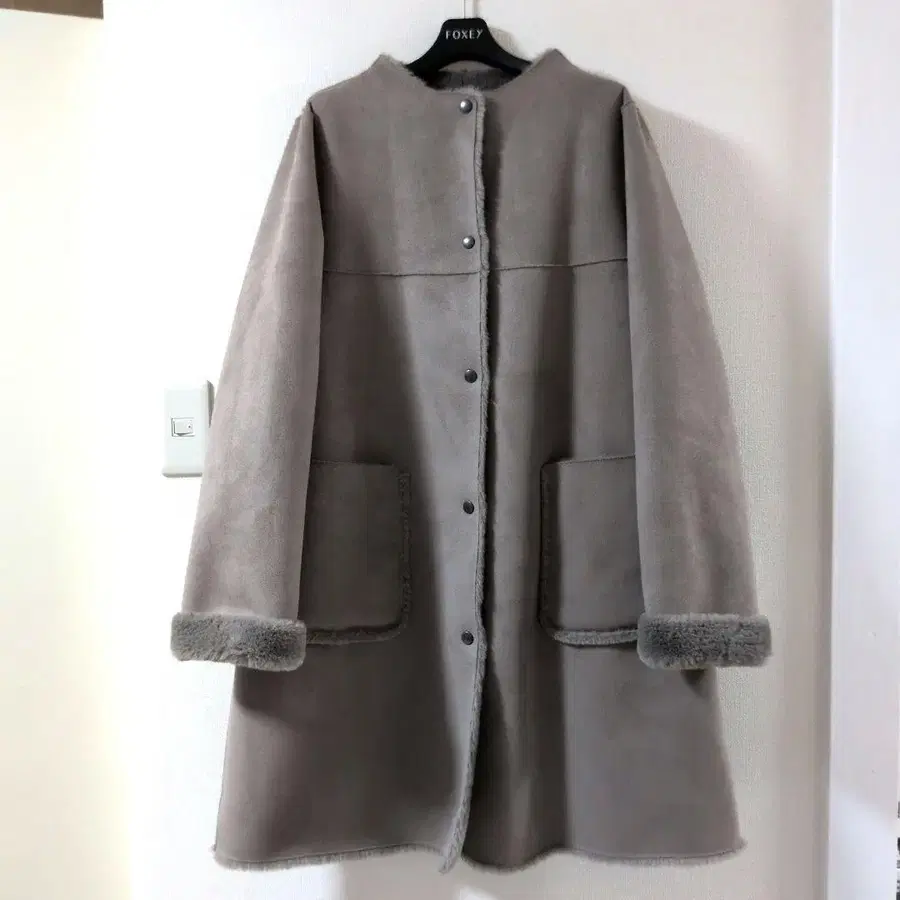 데셍 Dessin 에코 퍼 보아 코트 그레이지 무스탕 롱