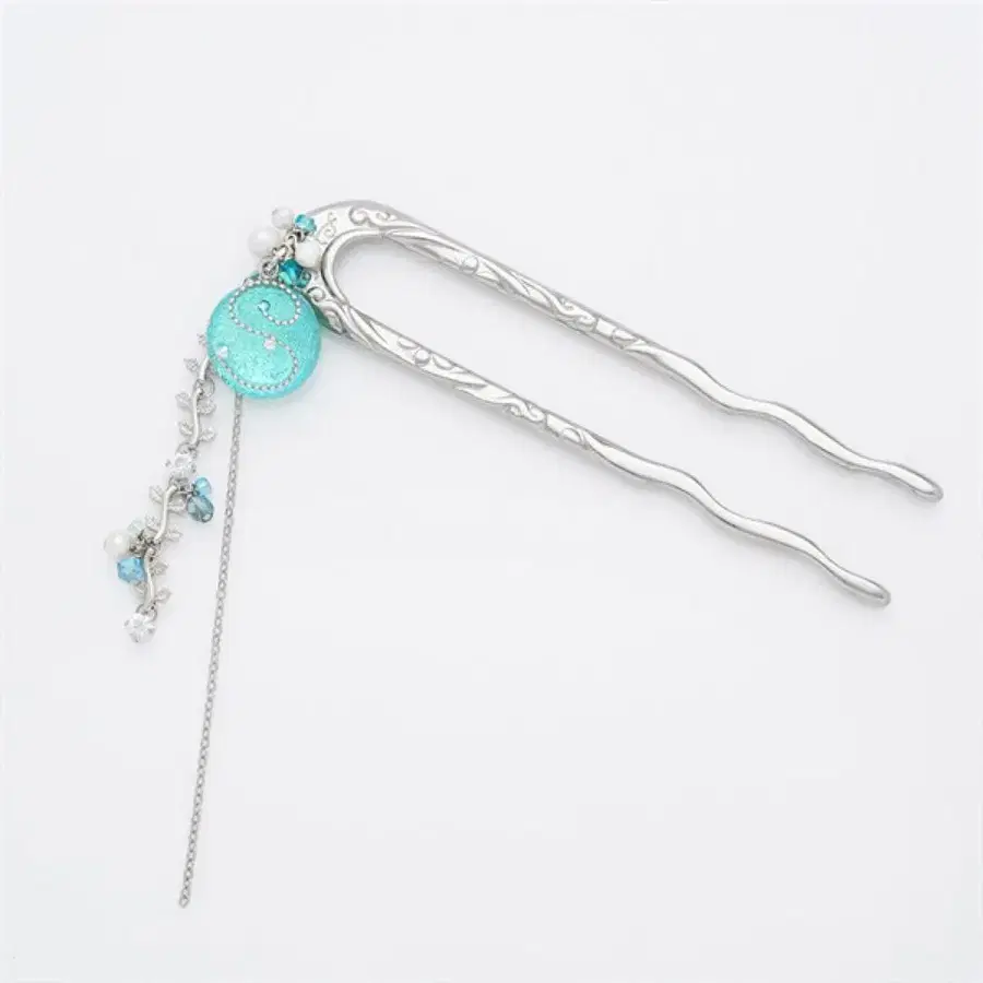 - 디자인: 실버 색상 헤어콤에 파란색 장식과 비즈 포함
