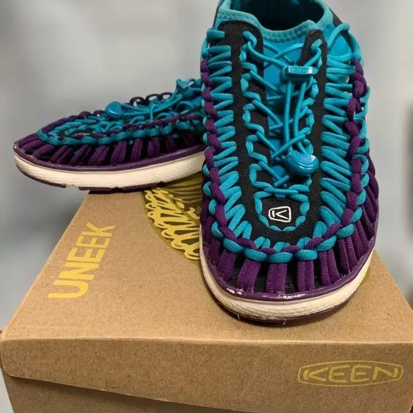 ■ 내용물 독특한 뜨개질 디자인과 쾌적한 착용감을 겸비한 KEEN의 UNEEK 02 샌들. - 브랜드: KEEN - 모델명: UNEEK 02 - 색상: Capri Breeze/Grape Royale - 사이즈: 28.0 cm - 타입: 샌들 ■ 상태 20~30회 이용 약간의 스크래치 및 얼룩 있음 개인이 세척 완료