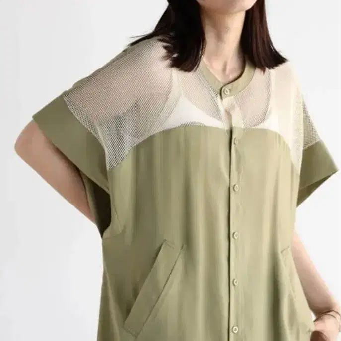 밀리터리 분위기의 셔츠를 베이스로 메쉬를 조합한 디자인 셔츠. 여유로운 실루엣으로 편안한 착용감. 밑단은 드로스트 사양으로 되어 있어, 조여 실루엣에 변화를 준 코디도 즐기실 수 있습니다 ◎ 베이직한 컬러 전개로, 데일리로 활용하기 좋은 아이템. 팬츠부터 스커트까지 폭넓은 하의와 잘 어울리는 아이템입니다. 컬러 카키 사이즈 9호 (cm) 기장:112, 화장:39.5, 가슴 너비:57 정가 18,000엔 간편 배송, 네고 불가.