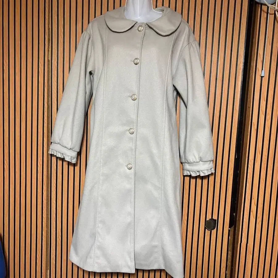 카라가 달린 라이트 베이지 롱 코트, 폴리에스테르 100%로 가볍습니다. - 색상: 라이트 베이지 - 사이즈: M - 소재: 폴리에스테르 100% - 디자인: 카라 부착, 단추식 - 소매: 긴팔, 커프스 포함 방문해 주셔서 감사합니다. 사이즈 - M