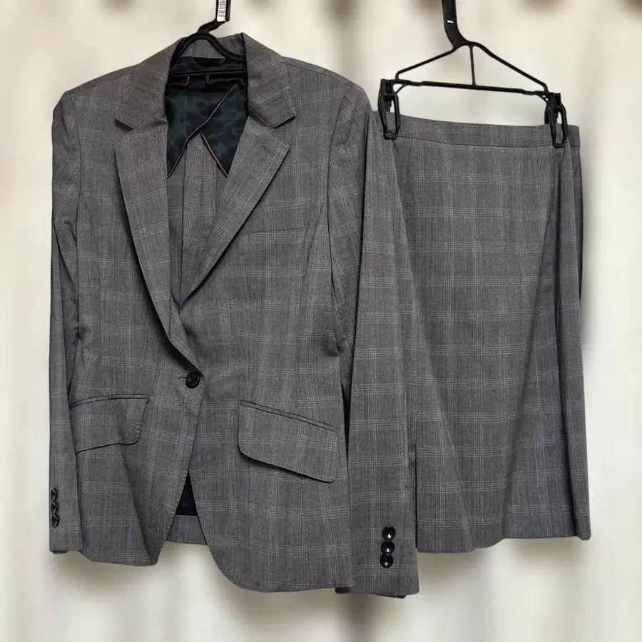 AOKI 그레이 체크 무늬 스커트 수트