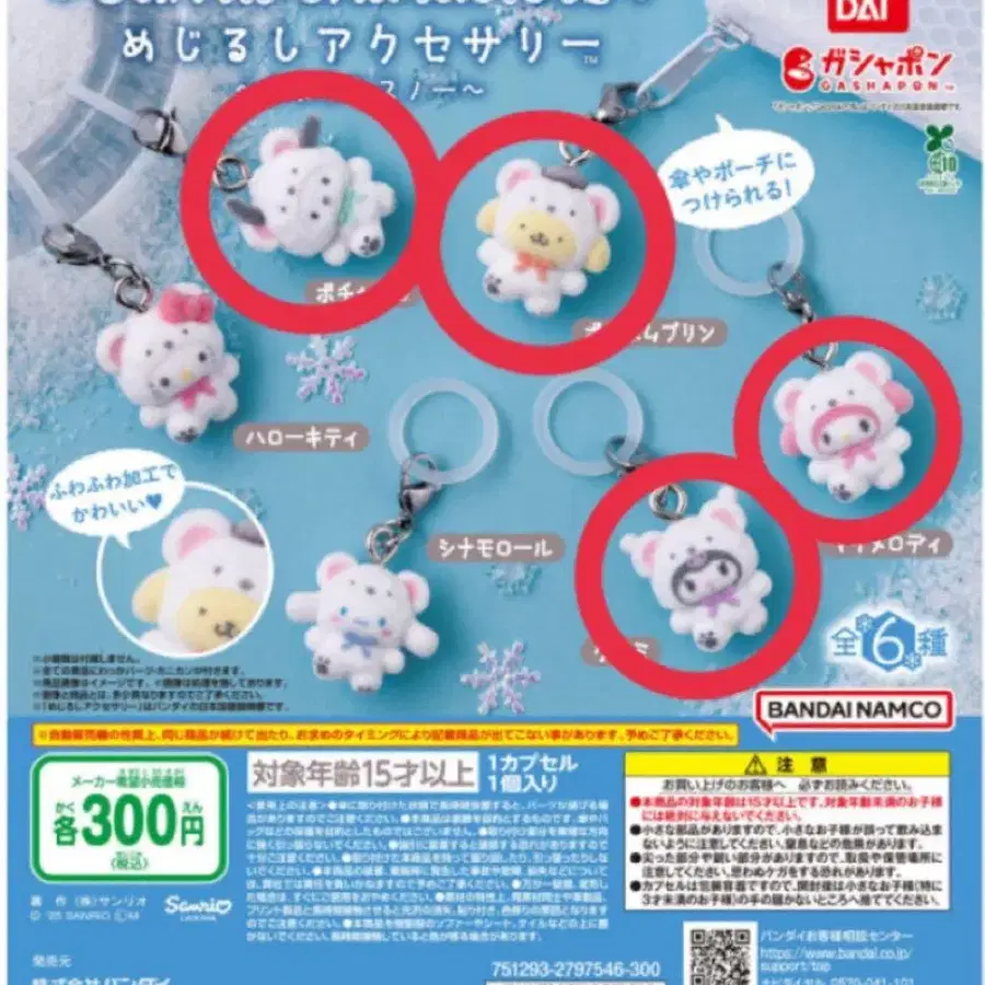 산리오 포근포근 스노우 메지루시 액세서리 전 6종 컴플리트 세트