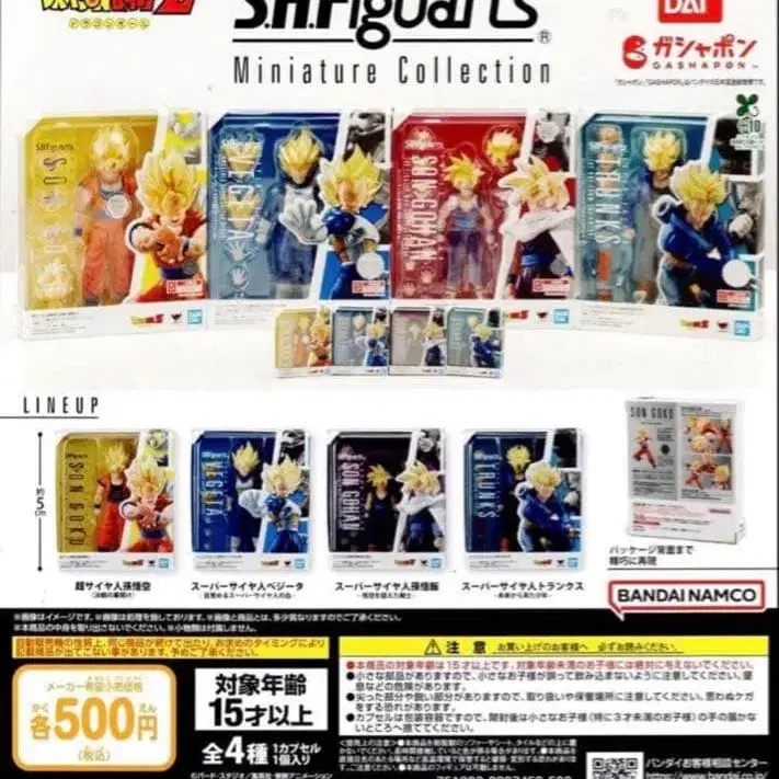 드래곤볼 S.H.Figuarts 미니어처 컬렉션 피규아트 미니어처 컬렉션 총 4종 세트 미개봉입니다. 미니북은 개수만큼 부속됩니다. ※ 대지 POP, 캡슐은 부속되지 않습니다. 01: 초사이어인 손오공〈결전의 막〉: (1개) 02: 슈퍼 사이어인 베지터-눈뜨는 슈퍼 사이어인의 피-: (1개) 03: 슈퍼 사이어인 손오반-손오공을 넘어선 전사-: (1개) 04: 슈퍼 사이어인 트렁크스-미래에서 온 소년-: (1개) 에어캡 포장으로 발송합니다. 가챠 캡슐 토이