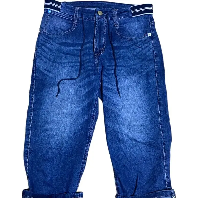 스트라이프 디자인의 허리 밴딩이 있는 다크 블루 캐주얼 숏팬츠. - 색상: 다크 블루 - 스타일: 캐주얼 - 디자인: 롤업된 밑단 - 포켓: 백 포켓 있음 - 허리 밴딩: 스트라이프 디자인의 허리 밴딩 방문해 주셔서 감사합니다. 사이즈 M 사이즈 - M