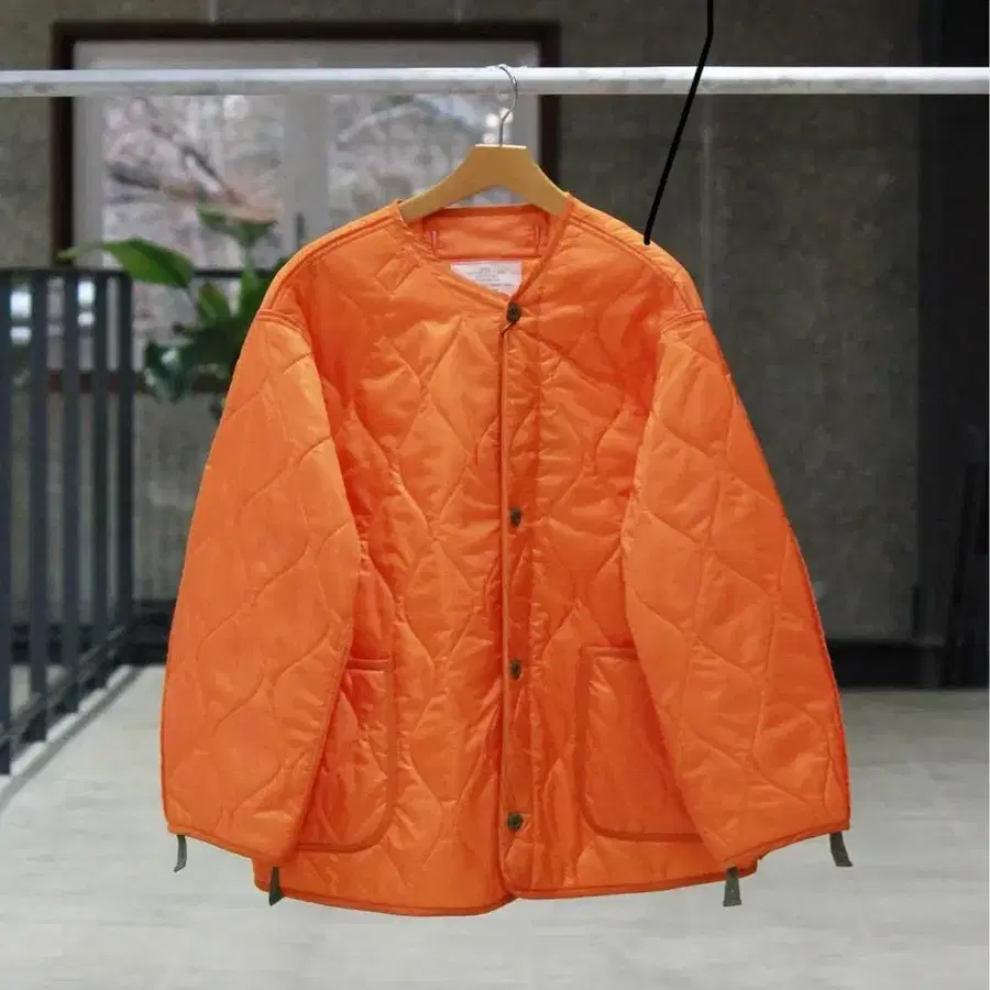 버튼이나 소매의 라이너 부품이 시크한 카키색으로, 밝은 오렌지를 조여줍니다.