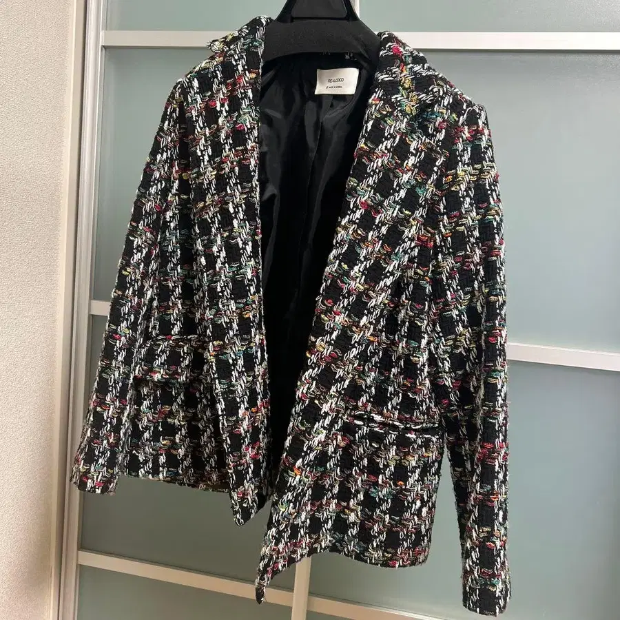 다색 체크 무늬가 특징인 테일러드 자켓. - 브랜드: REALCOCO - 색상: 다색 (블랙, 화이트, 빨간색, 파랑, 그린 등) - 스타일: 테일러드 자켓 - 소재: 트위드풍 원단 - 포켓: 앞면에 2개의 포켓 있음 - 디자인: 체크 무늬 방문해 주셔서 감사합니다. 사이즈 - FREE SIZE