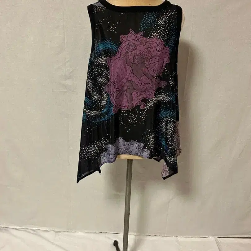 토쿠코 프리미어볼 슬리브리스 튜닉 쉬폰 천사 패턴 블랙