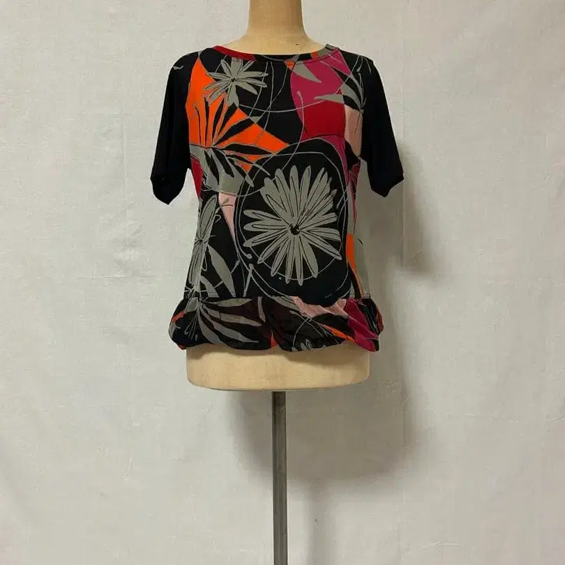 블랙을 베이스로, 오렌지, 핑크, 그레이 계열의 대담한 꽃무늬 프린트가 돋보이는 TOKUKO다운 개성 있고 고급스러운 디자인입니다.