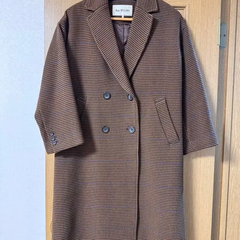 포인트 컬러인 스카이블루 체크가 돋보이는 탄탄한 코트입니다.