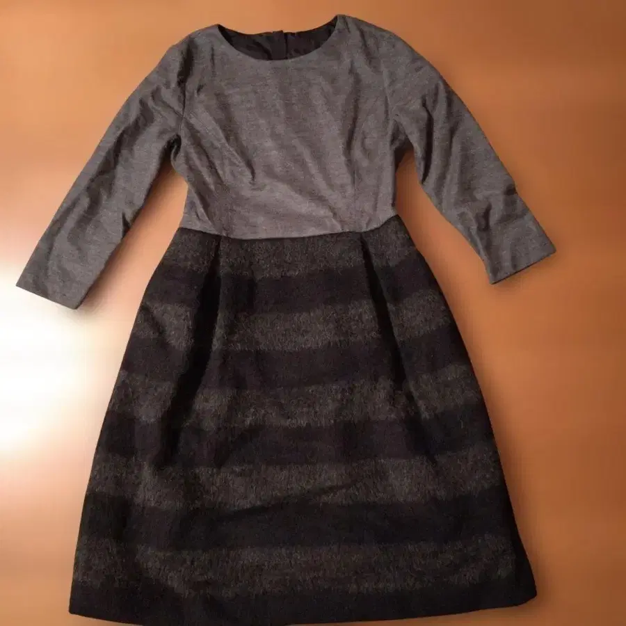 그레이와 블랙 스트라이프 디자인의 무릎 기장 원피스입니다. 긴팔 스타일로 엘레강트한 인상을 줍니다. - 브랜드: INED - 색상: 그레이/블랙 - 스타일: 무릎 기장 원피스 - 소매 길이: 7부 소매 방문해 주셔서 감사합니다.