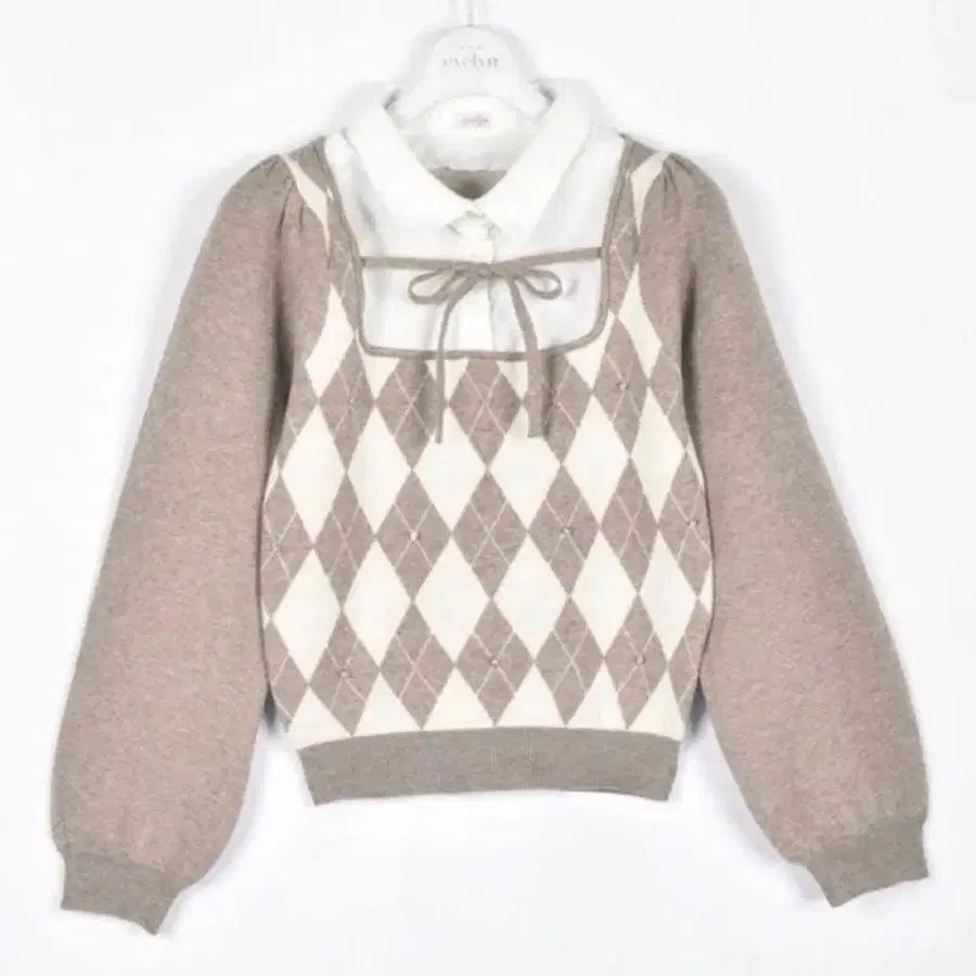 새상품급 evelyn 체크 로고 니트 아이스 그레이