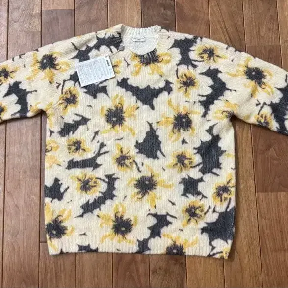 DRIES VAN NOTEN의 플라워 패턴 니트 스웨터입니다. 구매했지만 저에게는 어울리지 않을 것 같아 그대로 보관했습니다. 사이즈는 M이며, 어깨 너비 래글런으로 인해 측정 곤란 가슴 너비 61cm 기장 73cm 입니다. 부드러운 소재감에 두께도 있습니다. 지금 시기에 딱 좋을 것 같습니다.