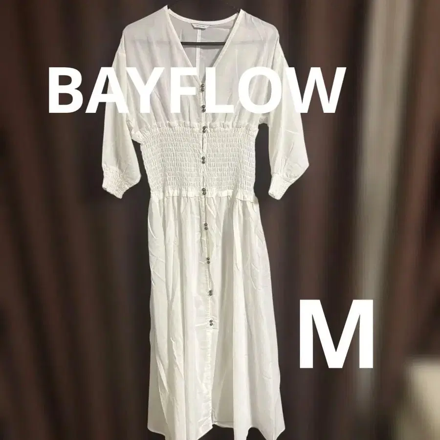 자동 번역되었어요. 원문보기허리 셔링 디자인의 화이트 원피스.