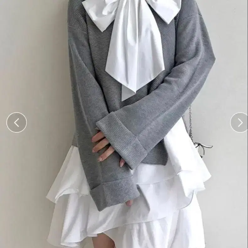 리본과 프릴이 특징인 그레이와 화이트의 미니 원피스. - 색상: 그레이/화이트 - 디자인: 리본 포함/프릴 포함 - 스타일: 캐주얼/페미닌 - 소매 길이: 긴팔 방문해 주셔서 감사합니다. 즉시 구매 가능합니다. 2회 정도 착용했지만, 눈에 띄는 흠집이나 얼룩은 없습니다. 신경 쓰이시는 분은 구매를 삼가해 주시기 바랍니다. 사이즈 - FREE SIZE