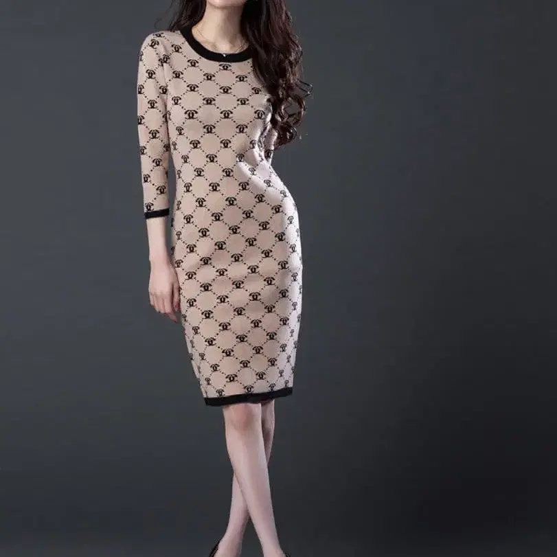 EmiriaWiz 에밀리아 위즈 모노그램 패턴 자카드 니트 원피스