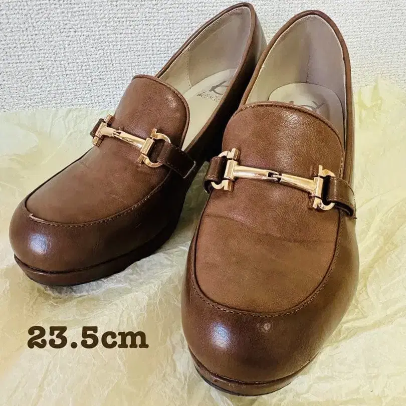 와이드 힐, 앞 통굽으로 정면, 가로에서의 형태가 동글동글해서 아주 귀여워요. 단종되어 현재 판매되는 로퍼에는 없는 색감(밝은 브라운, 카멜, 밑창과 본체 동일 컬러), 형태라고 생각합니다.