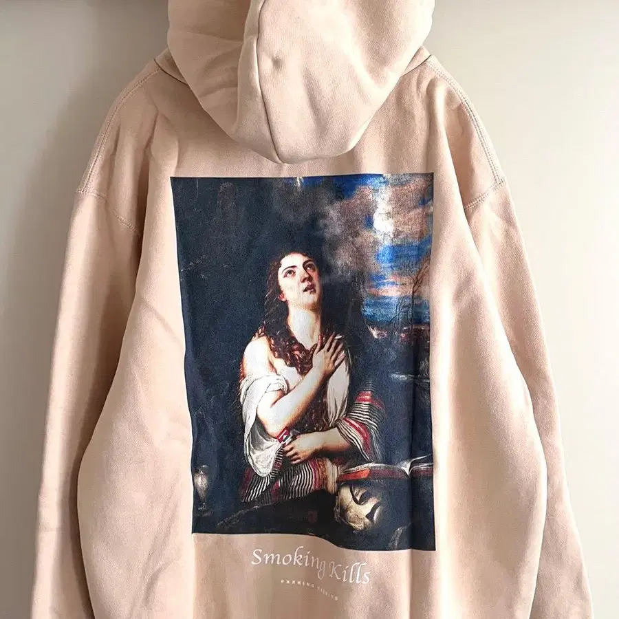 인기 에프알2 FR2 회화 후드티입니다. 베이지색 바디의 등에는 '뉘우치는 막달라'를 모티브로 한 프린트가 들어간 인기 모델! 빨리 구매하는 사람이 임자입니다!